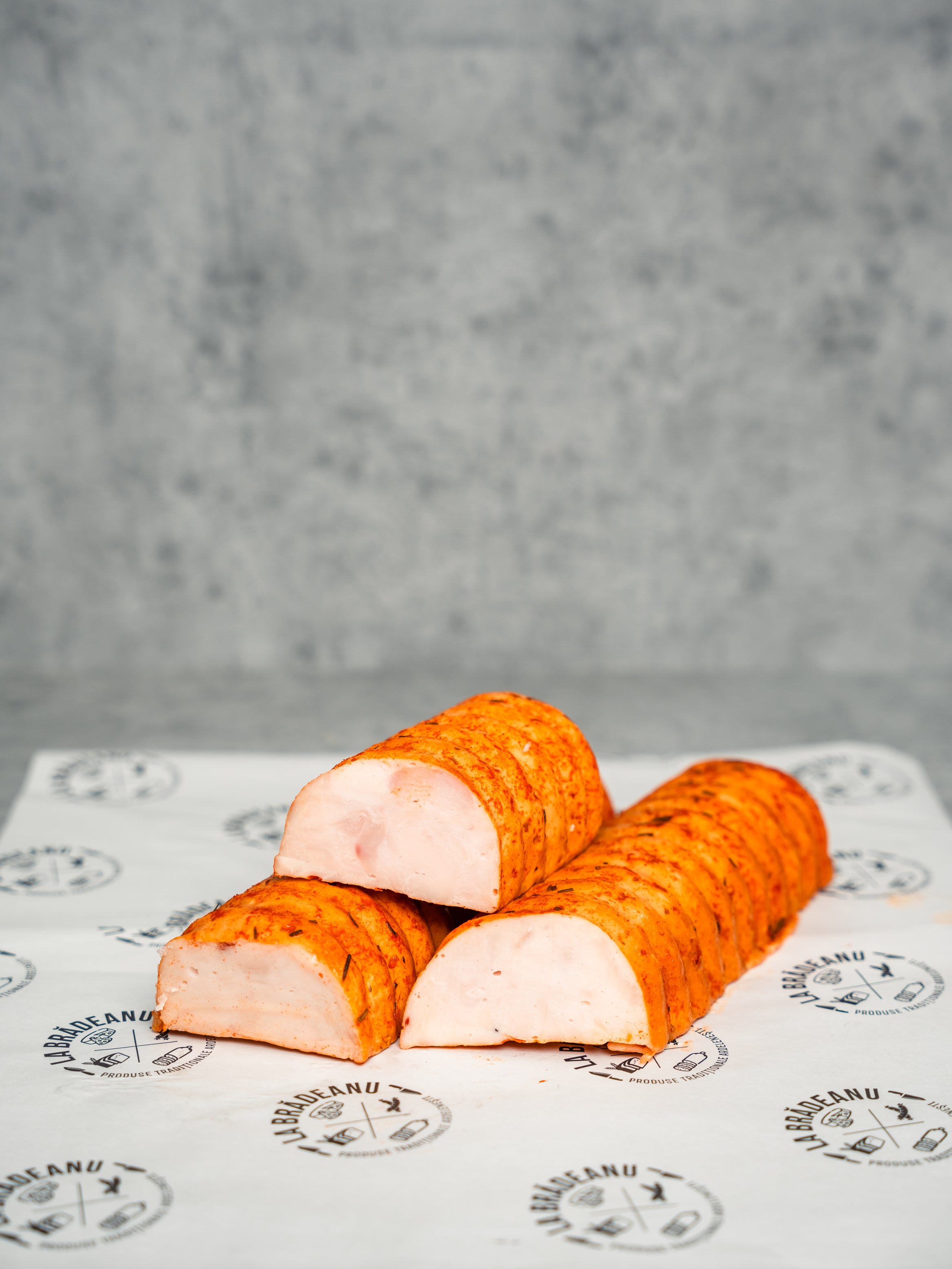 Ingrediente: piept de pui dezosat, sare cu nitrit, piper alb, boia dulce , rozmarin, zahar, mixt de condimente. Poate contine urme de telina.