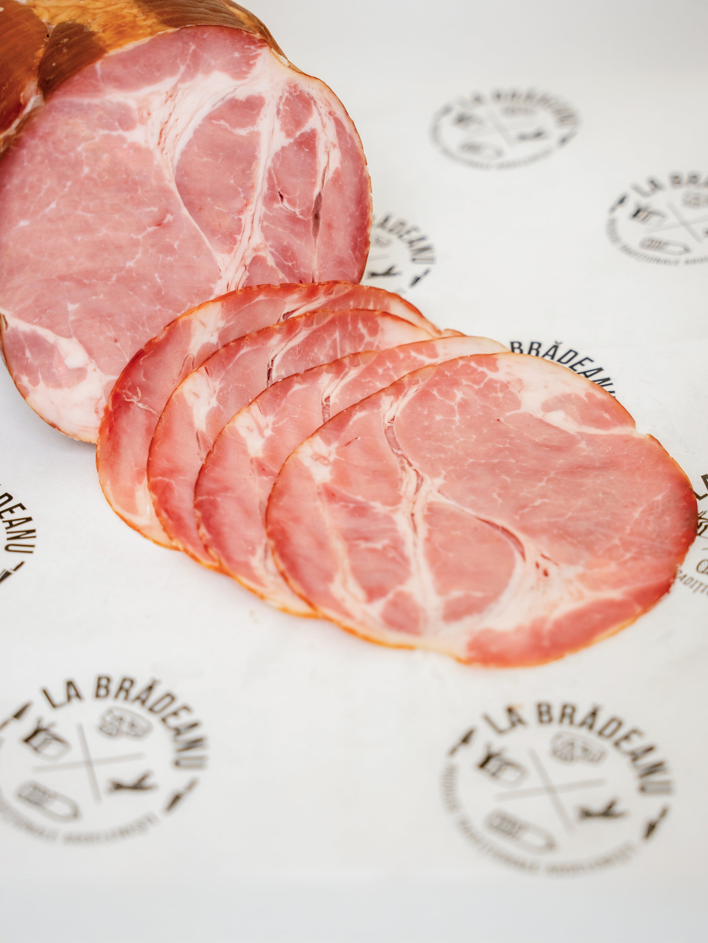 Ceafă afumată ținută la saramură și afumată. Produsul vine feliat, specificați în notițe la checkout dacă nu doriți feliere.