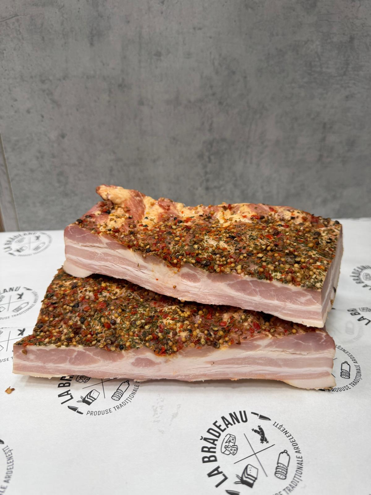 Ingrediente: piept de porc, sare cu nitrit, piper, musiar, patrunjel.